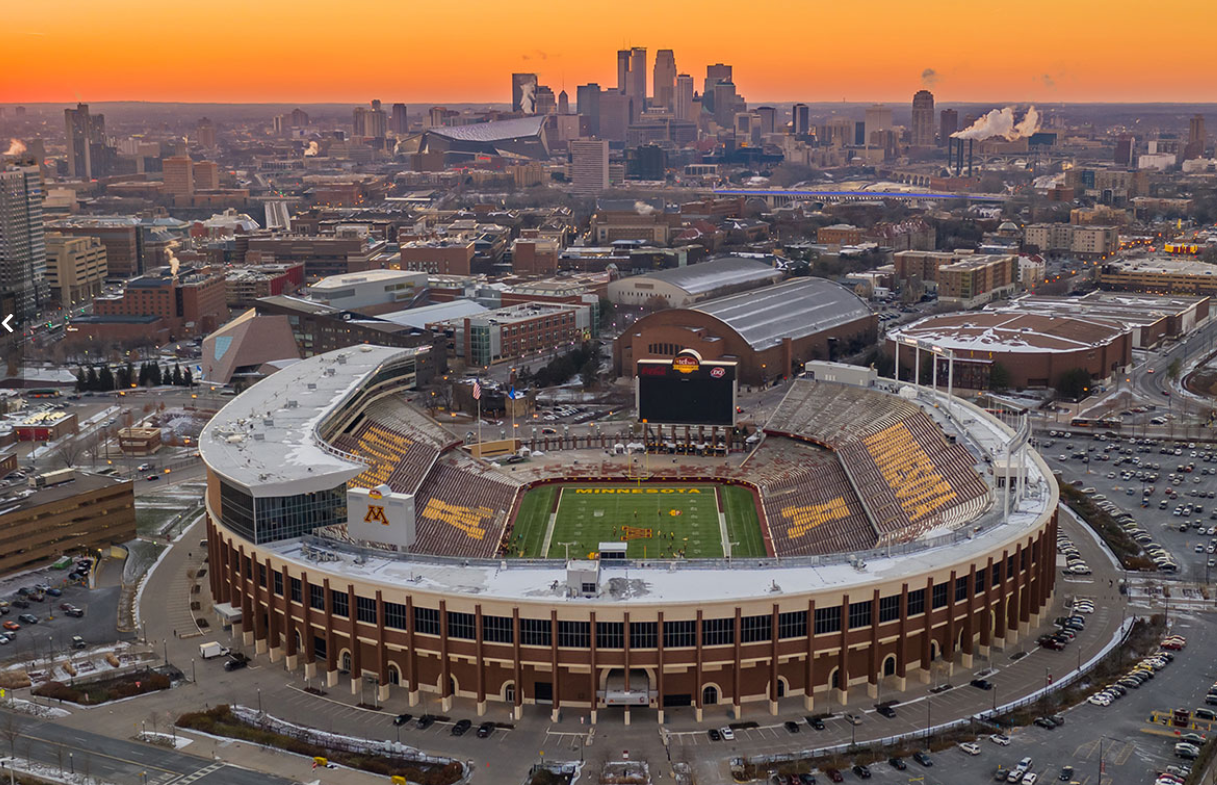 Complementing the concrete’s strength, the stadium’s exterior features warm tones of brick and concrete block that echo the traditional collegiate architecture found across the U of M campus. This thoughtful combination of materials blends old and new, creating a space that feels both cutting-edge and connected to its historic surroundings.